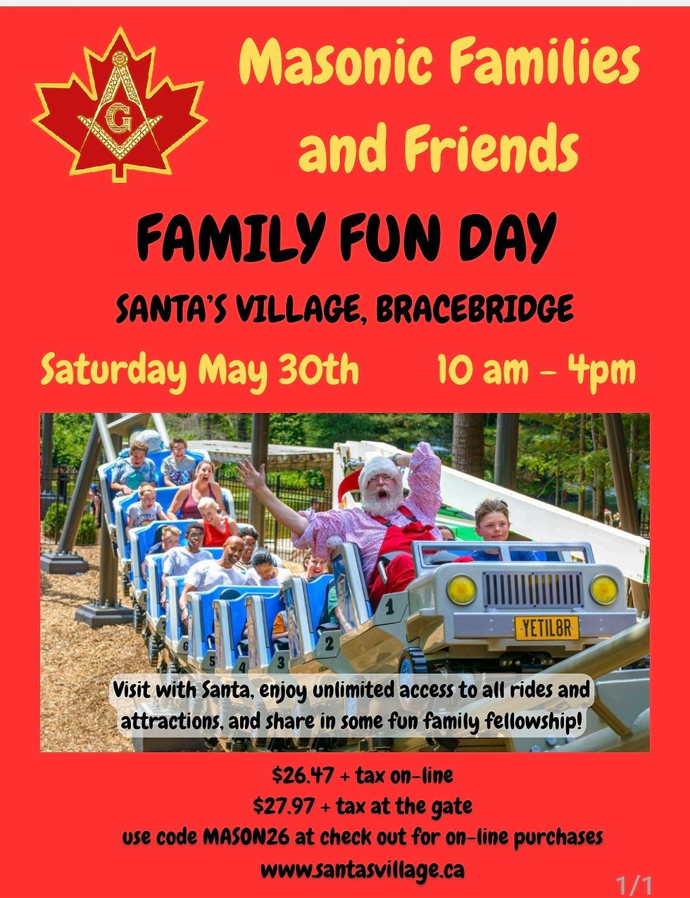 Bring Family and Friends to Masons Day at Santas Village. Please spread the word.